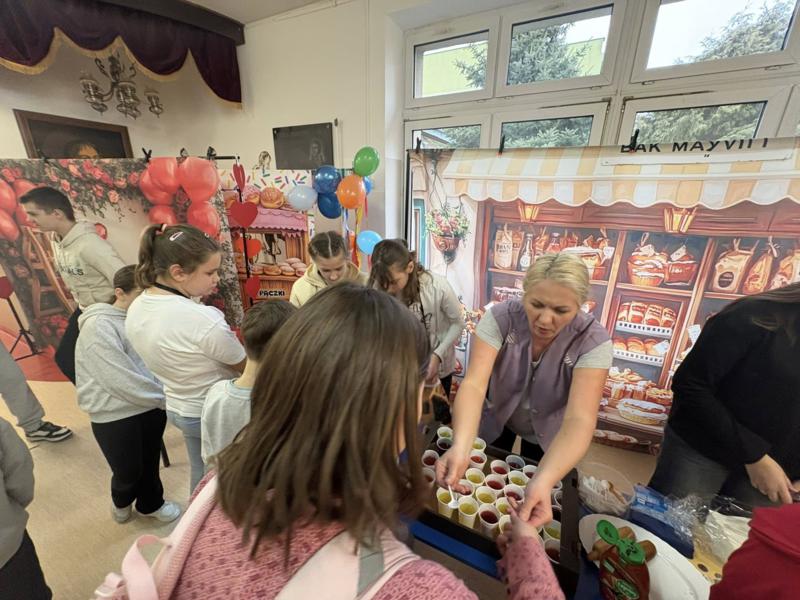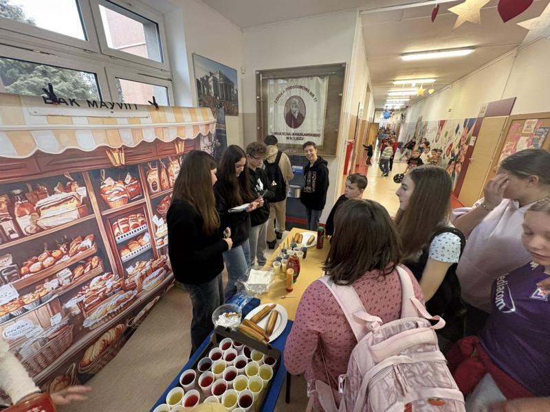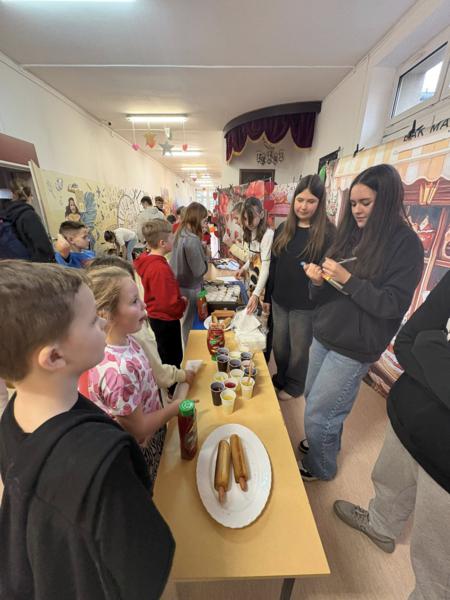 Walentynkowa Kawiarenka: Podczas przerw korytarze kusiły zapachami! Uczniowie mogli skosztować pysznych hot-dogów, chrupiących tostów i kolorowych galaretek.