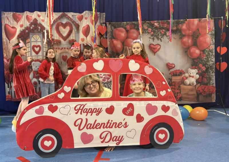 Hit Dnia: Absolutnym numerem jeden było walentynkowe autko, które własnoręcznie skonstruował nasz niezastąpiony pan woźny, pan Arek! Kolejka do zdjęć w tym czerwonym pojeździe nie miała końca – Panie Arku, to był majstersztyk!