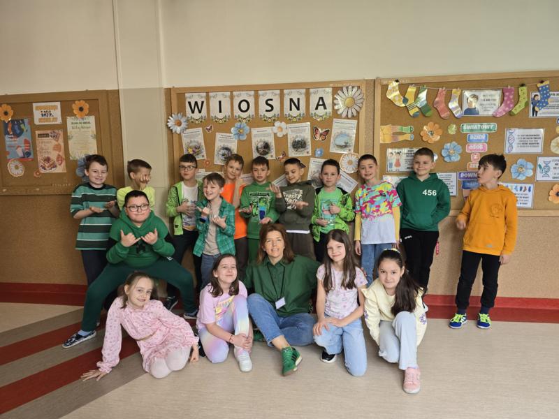 Każdy, kto włączył się do wspólnej zabawy i przyszedł ubrany w wiosenne kolory, został nagrodzony słodkim upominkiem! 🍬🍭