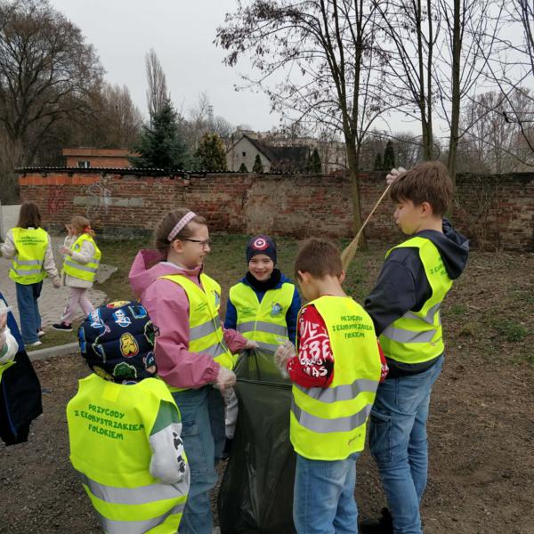 W ramach akcji uczniowie wspólnie uporządkowali wybrany obszar w okolicy szkoły.