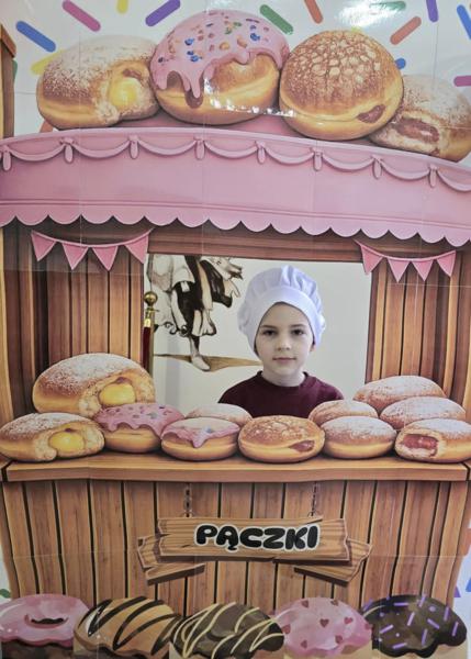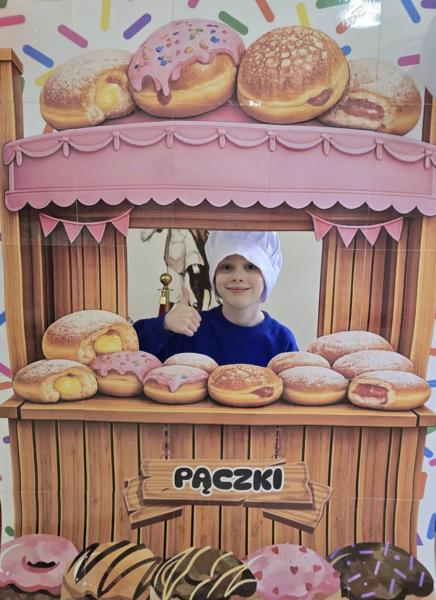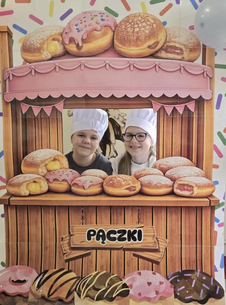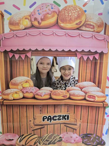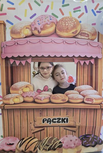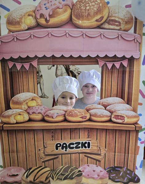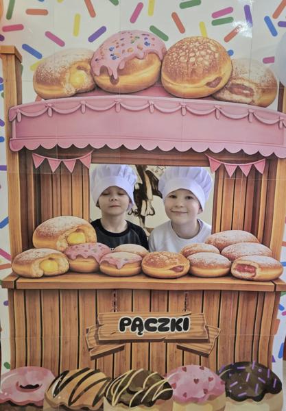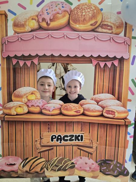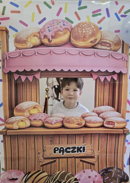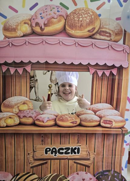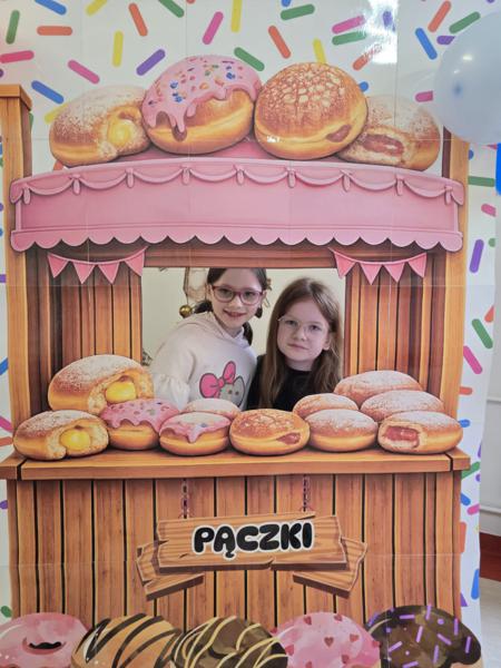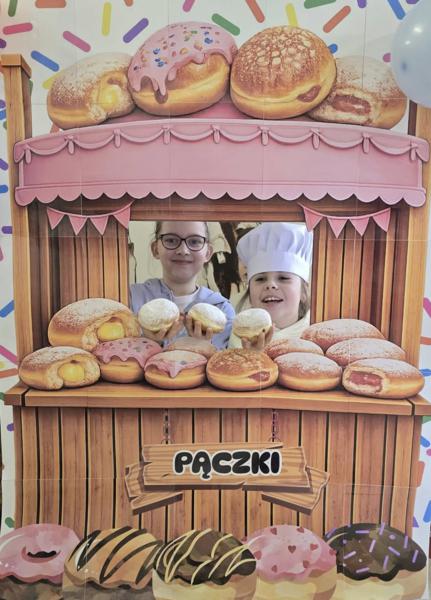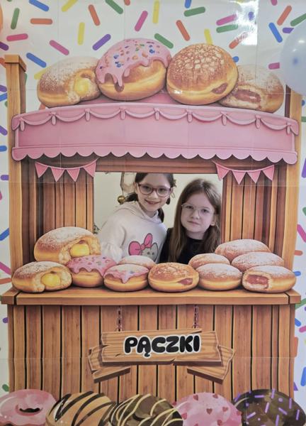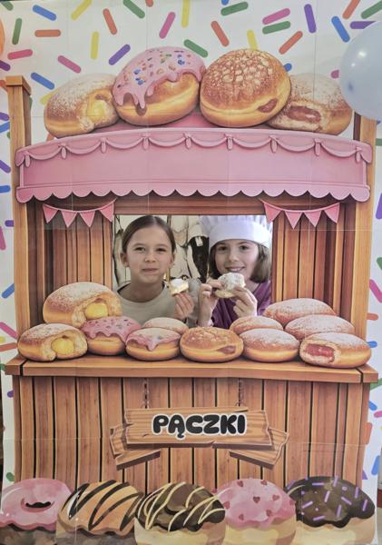 Ale pączki to nie wszystko! Nasz korytarz zamienił się w prawdziwe studio fotograficzne. W specjalnej „pączkowej foto-budce” robiliście sobie fantastyczne zdjęcia – Wasza kreatywność nie zna granic!