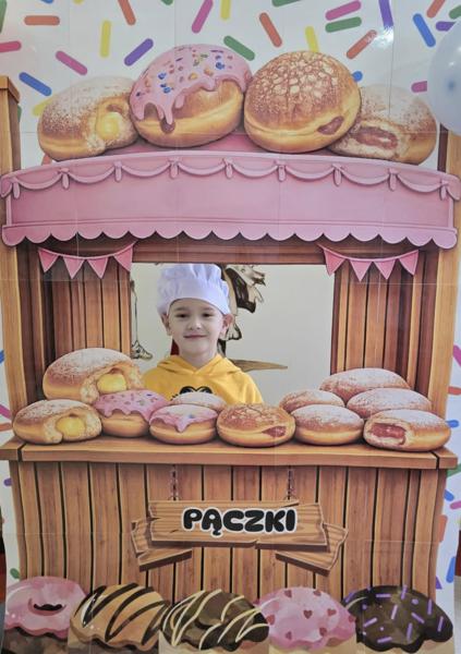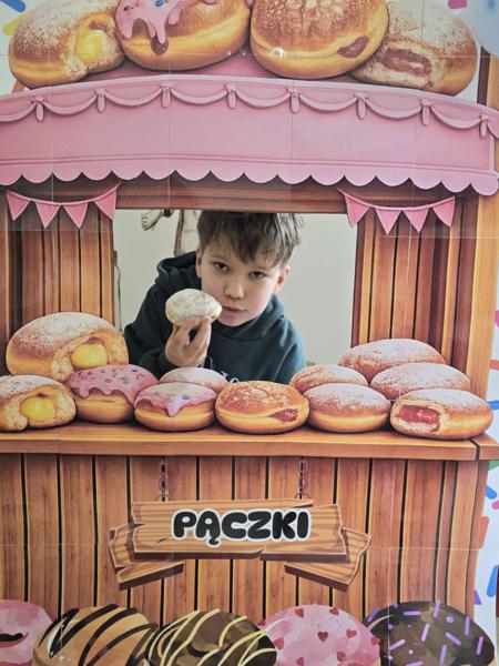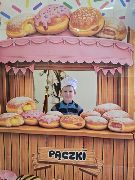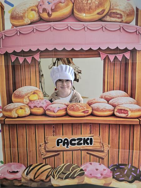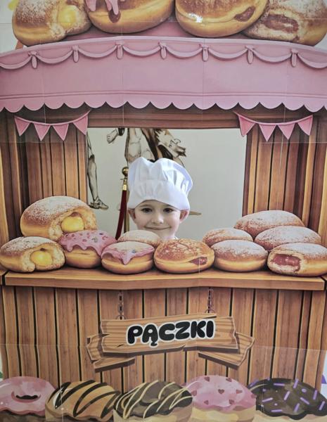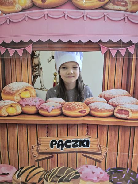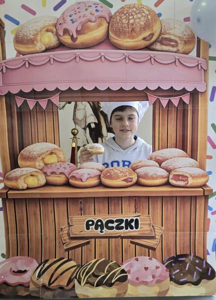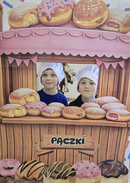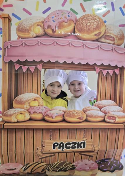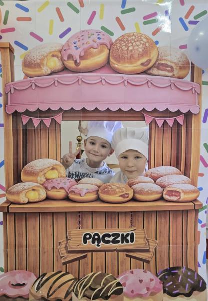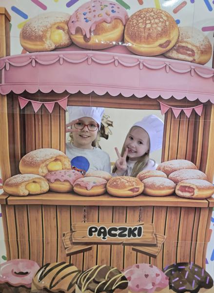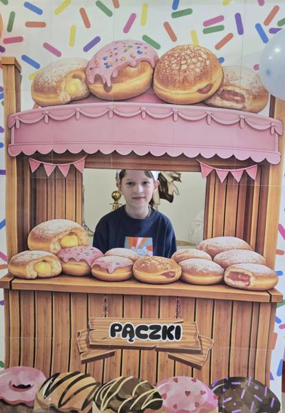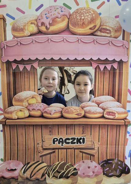 Ale pączki to nie wszystko! Nasz korytarz zamienił się w prawdziwe studio fotograficzne. W specjalnej „pączkowej foto-budce” robiliście sobie fantastyczne zdjęcia – Wasza kreatywność nie zna granic!