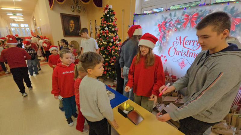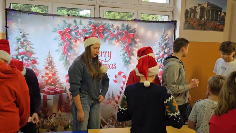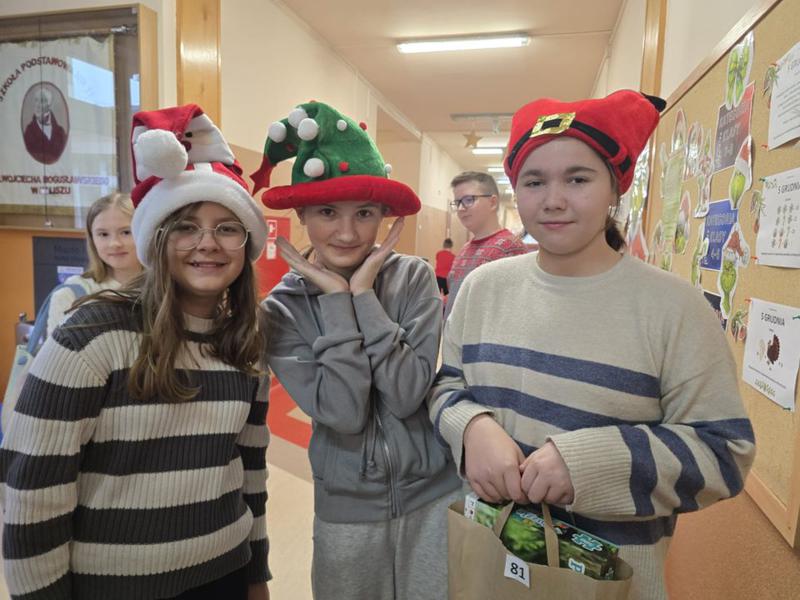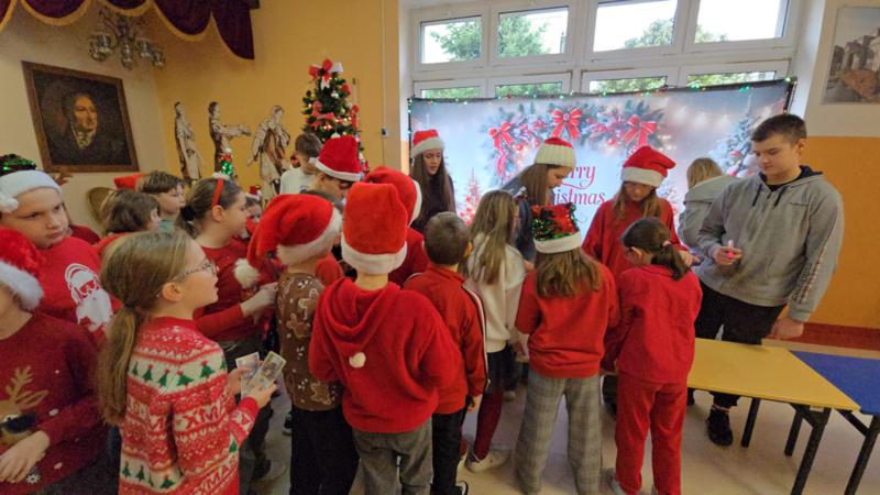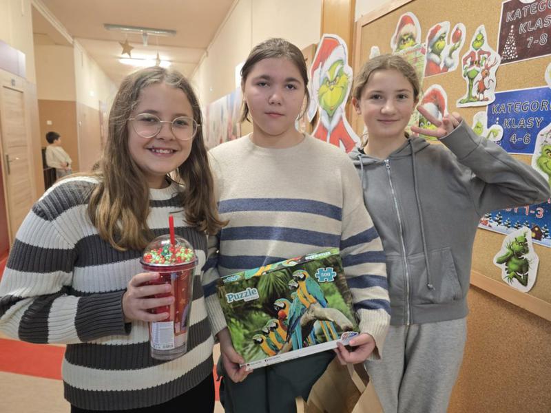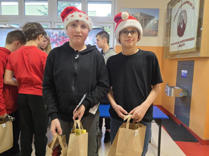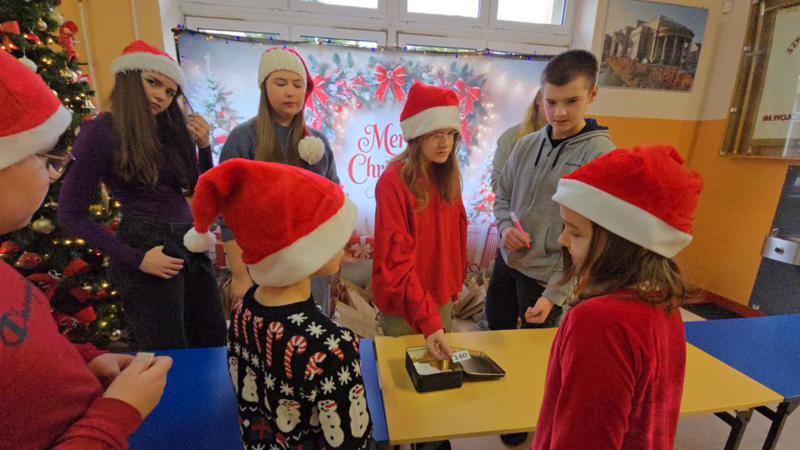 Ogromne brawa dla naszych wspaniałych uczniów, Pomocników Świętego Mikołaja z klasy 7 i 8, którzy aktywnie włączyli się w organizację i obsługę loterii: