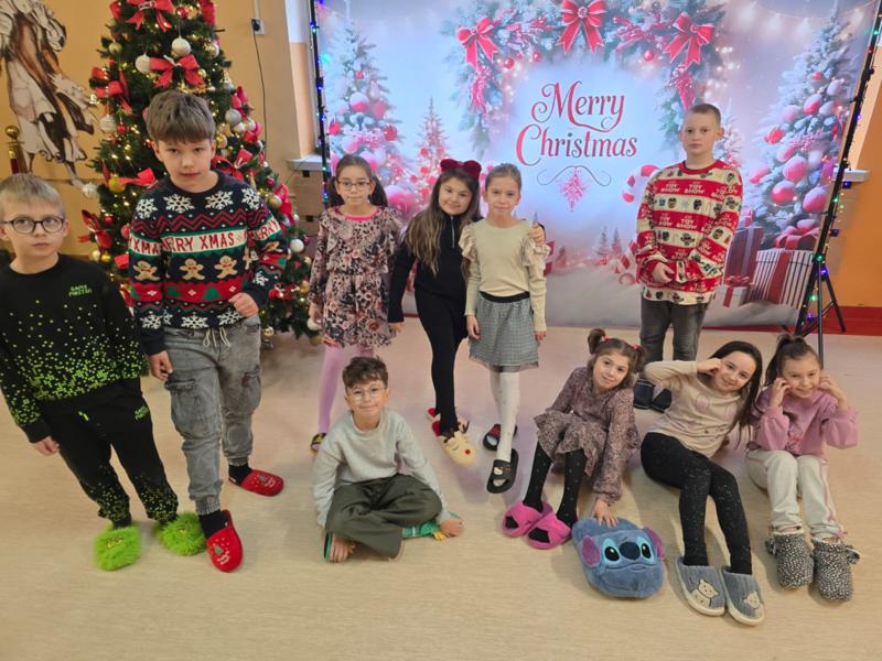 Dzisiaj w naszej szkole odbyła się kolejna zabawa tematyczna w ramach odliczania do świąt – Dzień w świątecznych bamboszach. Korytarze wypełniły się kolorowymi kapciami, reniferami, elfami, a przede wszystkim… ogromem śmiechu i dobrej zabawy!