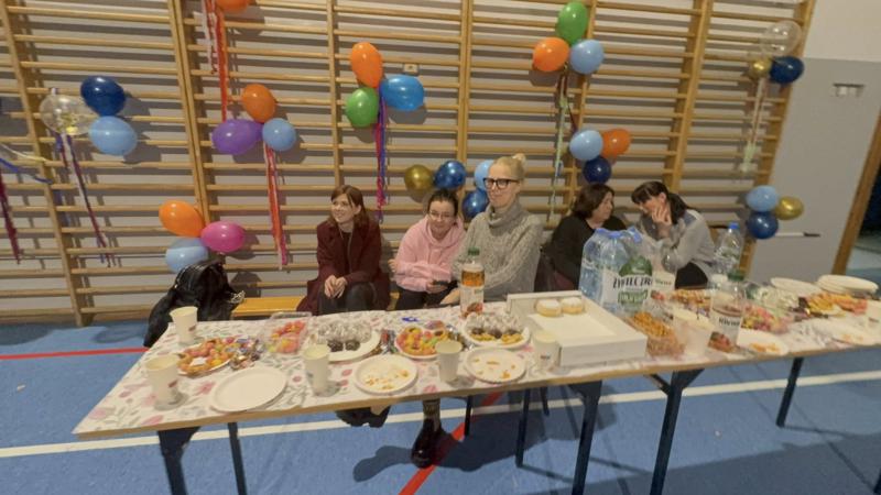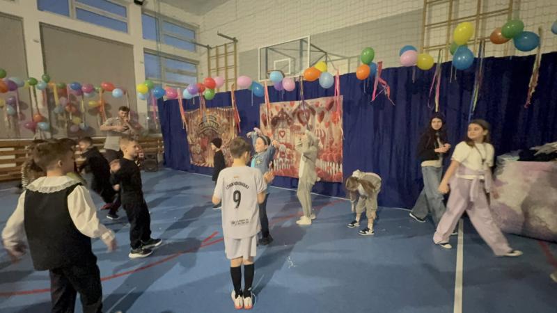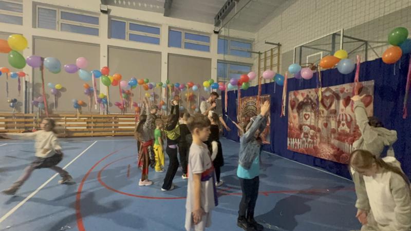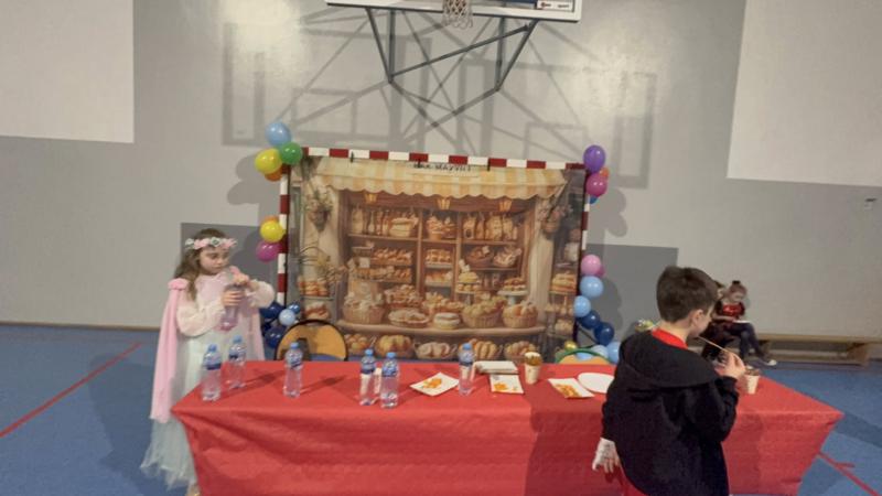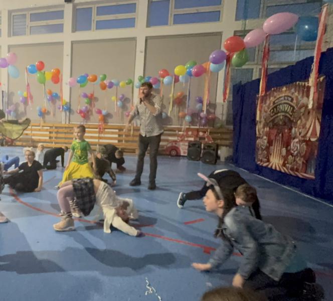 Gdy dotarł animator, zabawa rozkręciła się na dobre. Były konkursy, tańce i mnóstwo śmiechu. W przerwach między szaleństwami na parkiecie czekał na wszystkich pyszny poczęstunek przygotowany przez rodziców z poszczególnych klas.