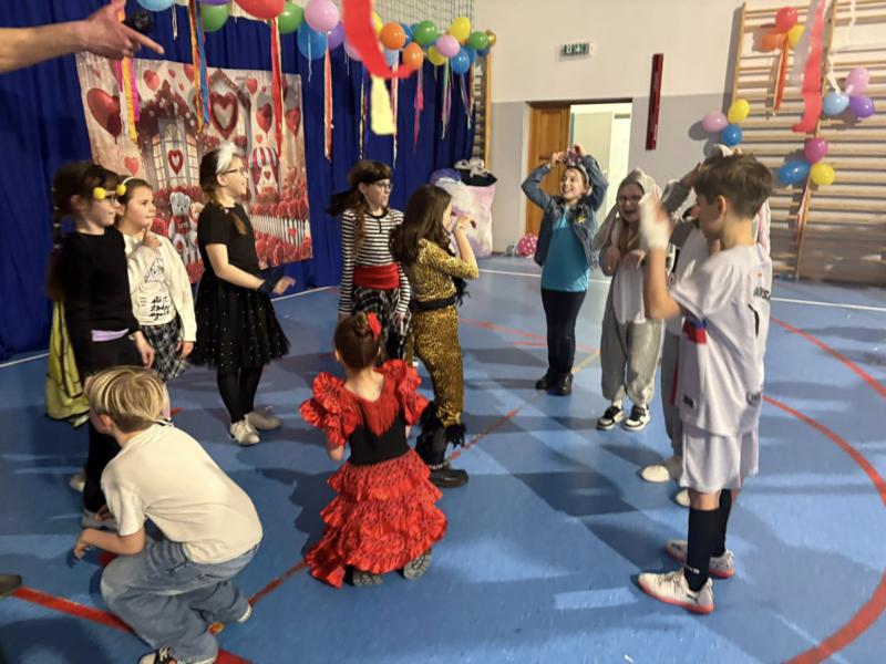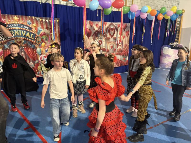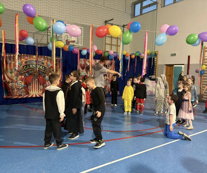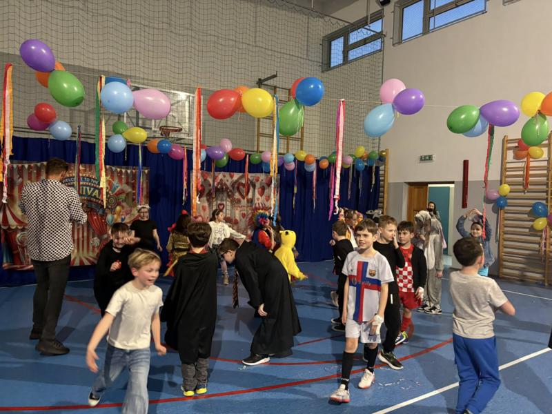 Bal karnawałowy w naszej szkole to była czysta radość! Choć początek przyniósł małą niespodziankę i animator nieco się spóźnił, nasze niezastąpione panie – Marzena Wojczak i Klaudia Witczak – błyskawicznie wkroczyły do akcji!