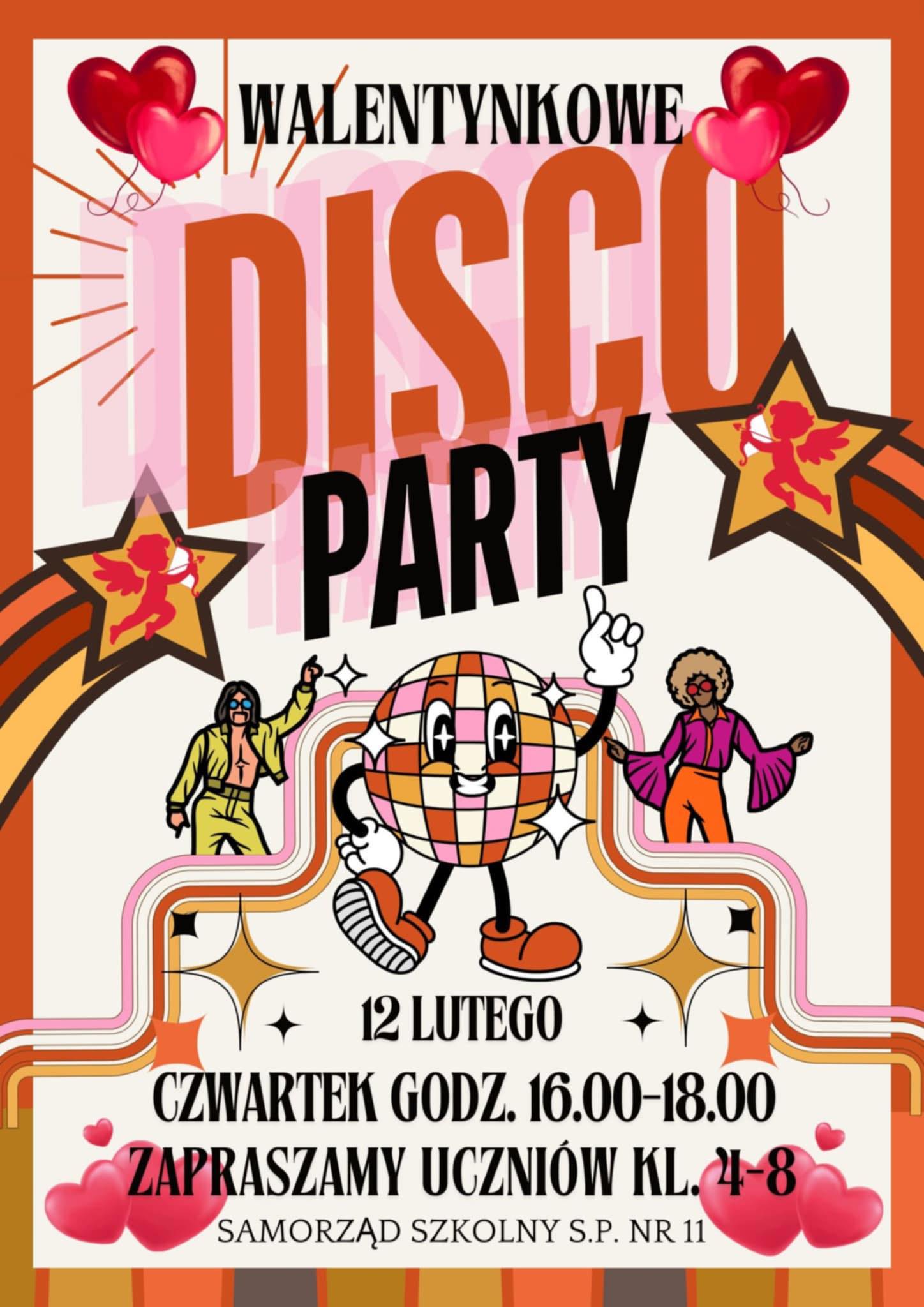 zaprasza uczniów klas 4–8 na wyjątkową dyskotekę w walentynkowych klimatach!