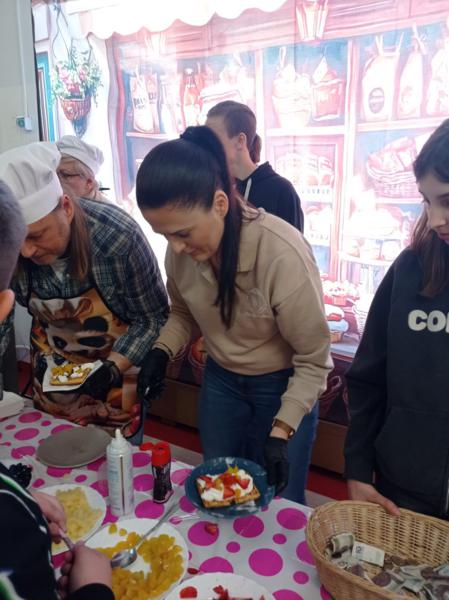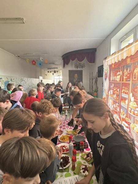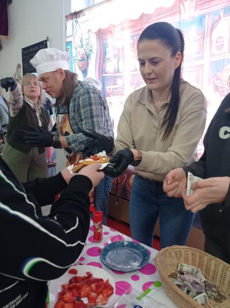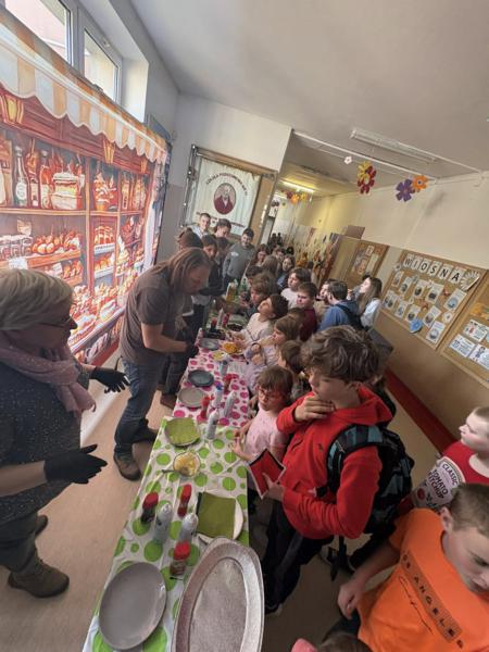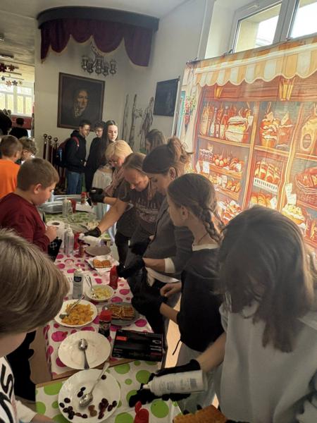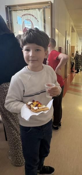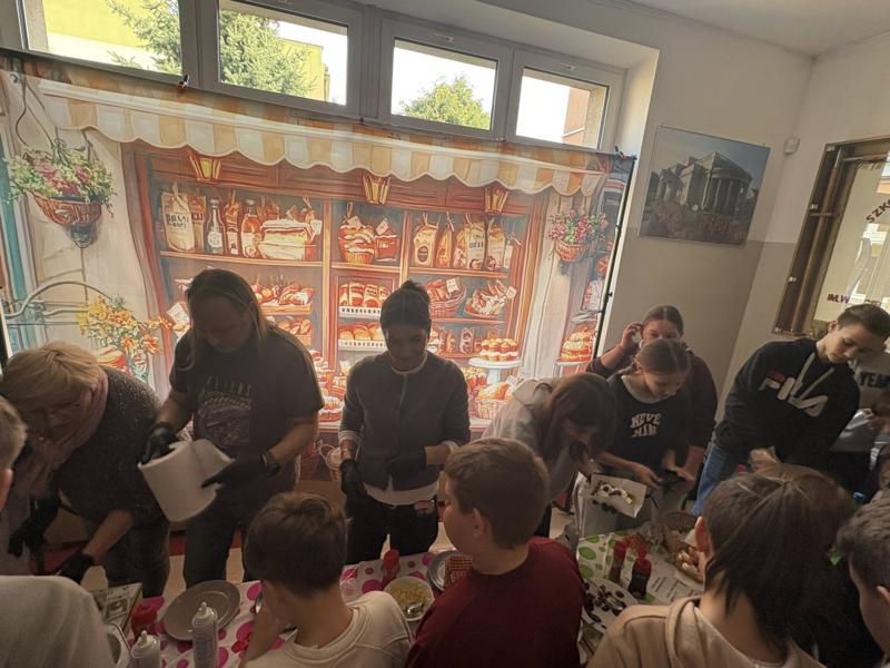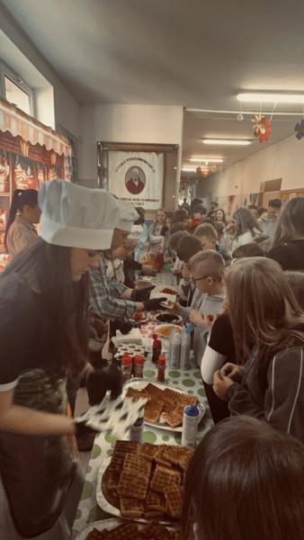 Niespodziankę sprawiła nam Pani Dyrektor, która widząc tłumy chętnych, bez wahania ruszyła do pomocy w przygotowywaniu i sprzedaży tych smakołyków! To był prawdziwy „dream team”! 👩‍🏫🤝