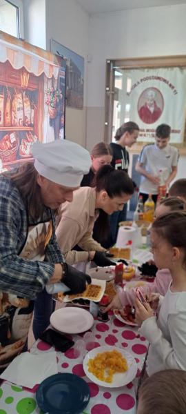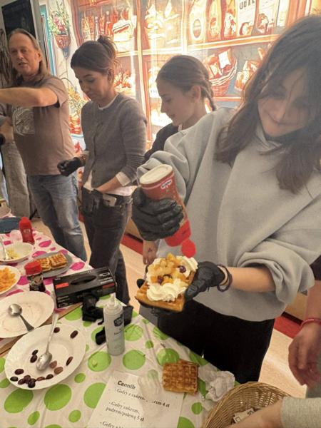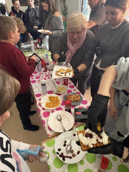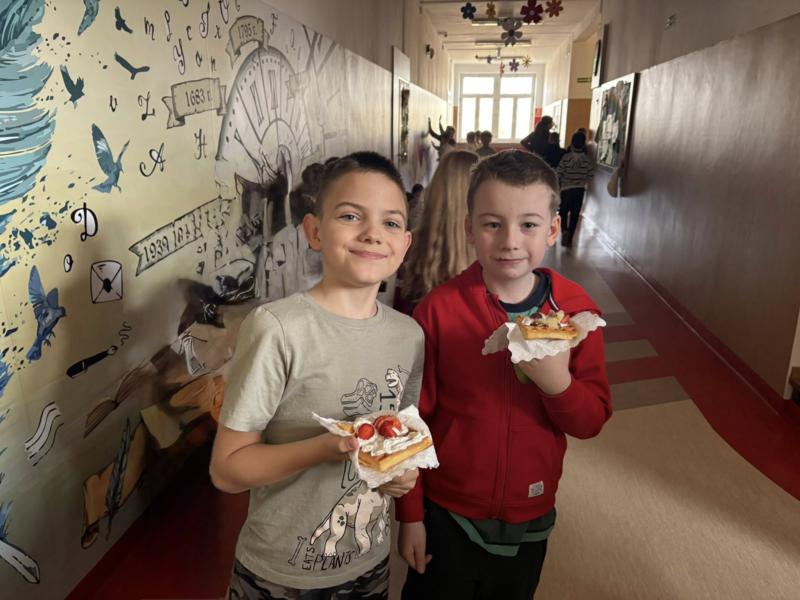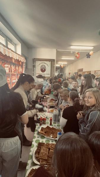 Poniedziałek i wtorek upłynęły nam pod znakiem pyszności! 🔥 Przez ostatnie dwa dni nasza szkoła zamieniła się w prawdziwą kawiarenkę. ☕️🍰 Wszyscy fani słodkości mogli zajadać się świeżutkimi goframi z cukrem pudrem, bitą śmietaną, owocami i polewami! ☁️🍓🍫