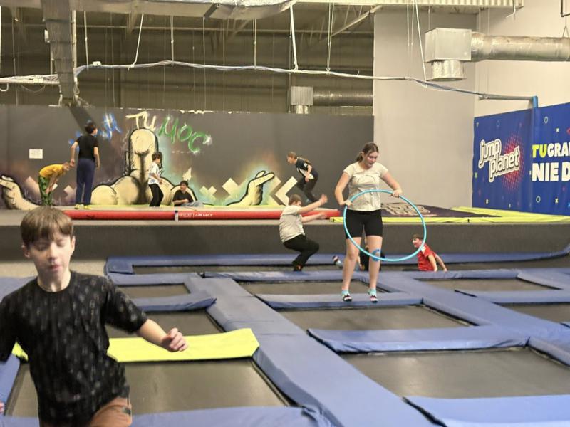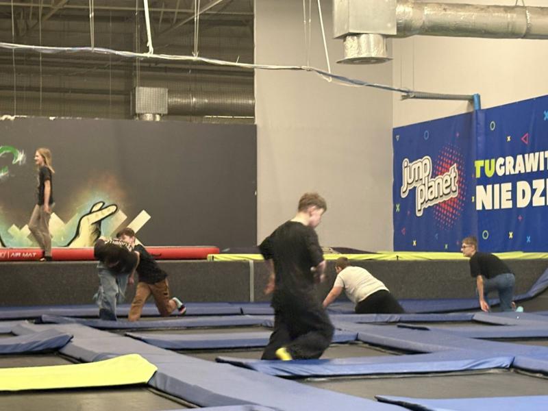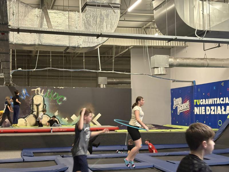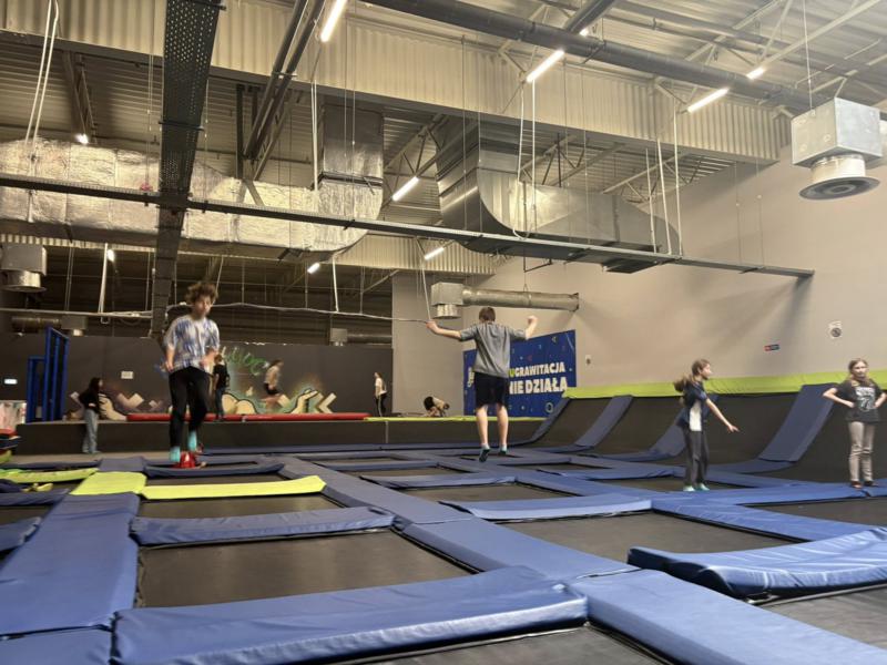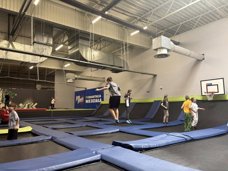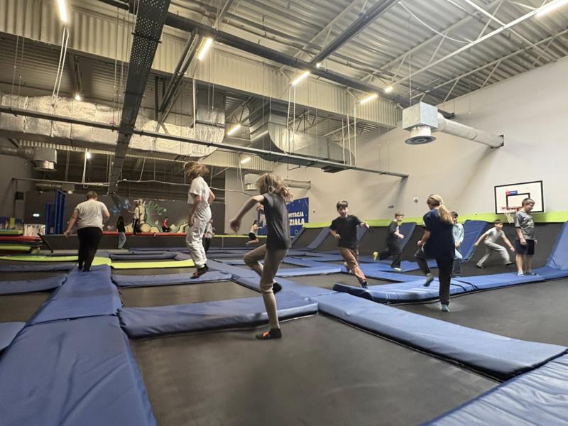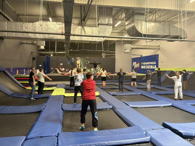 Kto powiedział, że szkoła to tylko ławki? Dzisiaj klasa 6 udowodniła, że najlepiej integrujemy się… w powietrzu! Razem z wychowawczynią odwiedziliśmy park trampolin Jump Planet.